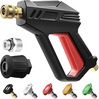 高圧洗浄ショートガン M22 14mm フィッティング 高圧洗浄ガン トリガーガン ノズルチップ5個 4000 PSI 温水と冷水の交換 カークリーニングに