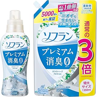 【Amazon.co.jp 限定】【まとめ買い 大容量】ソフラン プレミアム消臭 ホワイトハーブアロマの香り 柔軟剤 本体 550ml+詰め替え 特大1350ml