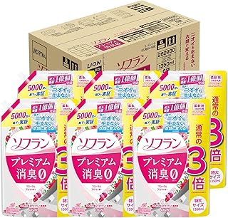 【ケース販売 大容量】ソフラン プレミアム消臭 フローラルアロマの香り 柔軟剤 詰め替え 特大1350ml×6個セット ソフラン プレミアム消臭のストアを表示 252個の評価 ¥6,580 (¥1 / ミリリットル) この商品について 商品サイズ (幅×奥行×高さ):36cm×21.6cm×32cm 内容量:1350ml×6個 (ケース販売) 注ぎやすい便利なキャップ付き 原産国:日本 香り:フローラルアロマの香り。 ベリーやピーチなどの明るいレッドフルーツをアクセントにした、フローラルブーケの華やかな香り 「部屋干し抗菌効果」で、部屋干し中もイヤなニオイの発生を抑える (全ての菌に対して抗菌効果を有するわけではありません) 対象商品: 【ケース販売 大容量】ソフラン プレミアム消臭 ホワイトハーブアロマの香り 柔軟剤 詰め替え 特大1260ml×6個セット ¥2,988 (¥498/個) 30ポイント (1%) ワイドハイターEXパワー 大 詰替え用 880ml×3個 ¥937 9ポイント (1%) 【ケース販売】アタック 抗菌EX スーパークリアジェル 洗濯洗剤 液体 詰め替え 大容量 1.6kg×6個 ¥5,700 (¥950/個) [Amazon限定ブランド]デカラクサイズ ハミング消臭実感 柔軟剤 根本消臭+抗菌バリア ローズガーデンの香り 詰替え用 2400ml 大容量 309 1個の商品:¥1,345から