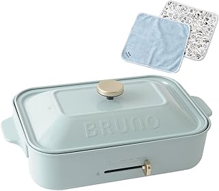 BRUNO ブルーノ コンパクトホットプレート 本体 プレート2種(たこ焼き 平面) キッチンクロス 付き ブルーグレー Blue Gray おすすめ おしゃれ かわいい これ1台 蓋 ふた付き 温度調節 洗いやすい 1人 2人 3人用 小型 小さいサイズ 少人数 ひとり暮らしにも 幅約40㎝ BOE021-BGY 1700321