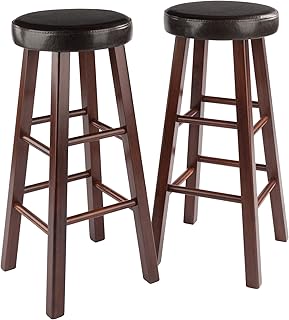 Winsome Wood Marta Assembled Round Bar Stool with PU Leather Cushion Seat and Square Legs, 30.3-Inch, Set of 2 141[並行輸入]