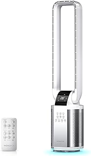 【Amazon限定ブランド】 タワーファン 【空気清浄&ECOモード】 羽なし 扇風機 スリム リーフレスファン 自動左右首振り 7つのモード 8段階風量 HEPAフィルター UV除菌 マイナスイオン放出 リズム風 入/切タイマー 静音 熱中症対策 オフィス 学校 部屋 リモコン付 敬老の日 プレゼント(ホワイト)