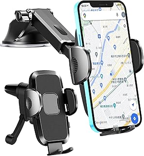 MICICI 車載ホルダー 安定性アップ スマホホルダー 片手操作 粘着ゲル吸盤&エアコン吹き出し口式兼用 車 携帯ホルダー スマホスタンド 360度回転/伸縮アーム/ワンタッチ iPhone 12 Pro/iPhone11 Pro Max//X/XR/XS//8 Plus/Huawei/Samsung/Sony/Xiaomi/Nexus 4-7インチ全機種対応 ブラック